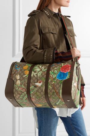 Gucci Leather-trimmed coated-canvas weekend bag