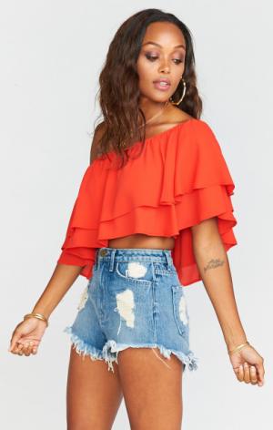 Hayworth Ruffle Top ~ Tequila Sunrise Crisp Show Me Your MuMu