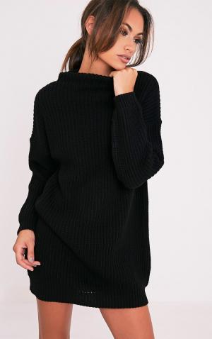 Iffy Black Oversized Cable Knit Dress - PrettyLittleThing
