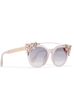Jimmy Choo Vivy embellished round-frame acetate and rose gold-tone sunglasses
