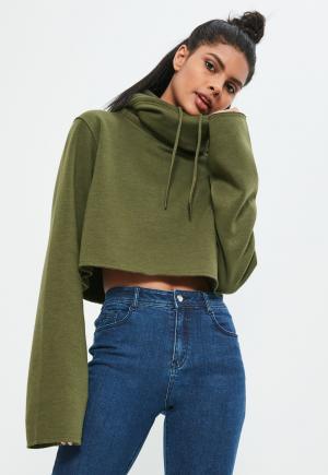Khaki Cropped Extreme Sleeve Hoodie - Missguided