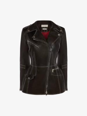 Leather Biker Jacket in Black/Ivory Alexander McQueen GB