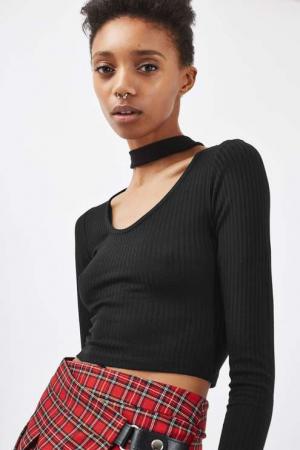 Long Sleeve Choker Top - Topshop