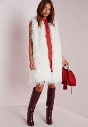 MissGuided MONGOLIAN FAUX FUR LONGLINE GILET WHITE