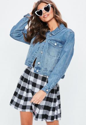 Petite Blue Cropped Boxy Denim Jacket Missguided