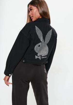 Playboy x Missguided Black Diamante Denim Jacket Missguided