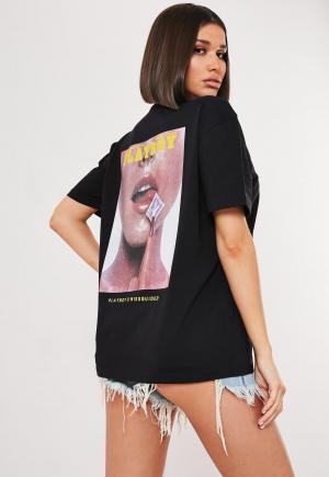 Playboy X Missguided Black Stamp Magazine Print Oversized T Shirt Missguided