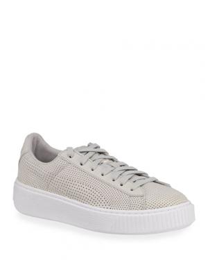 Puma Basket Low-Top Perforated Leather Platform Sneakers