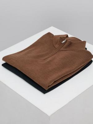 Reiss Toffee Brown Blackhall Merino Wool Zip Neck Jumpers 2 Pack - REISS