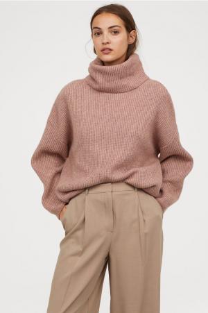 Ribbed Turtleneck Sweater - Pink melange - Ladies H&M US