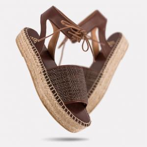 Sage Woven Pu Espadrille Flat Sandal (Chocolate) by Andre Assous