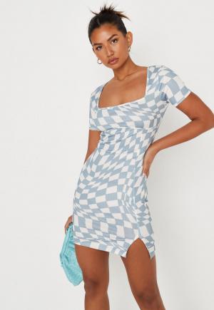 Tall Blue Checkerboard Print Seam Mini Dress Missguided