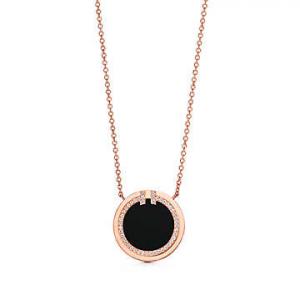 Tiffany T Two diamond and black onyx circle pendant in 18k rose gold. Tiffany & Co.