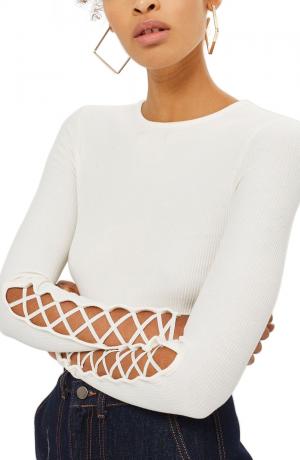 Topshop Lattice Sleeve Ribbed Top
