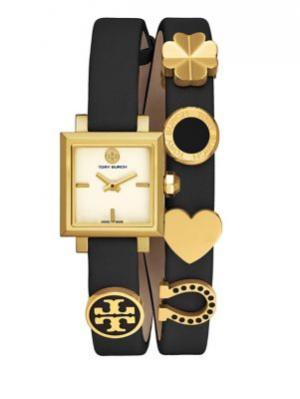Tory Burch Saucy Goldtone Stainless Steel & Double Wrap Leather-Strap Watch