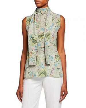 Valentino Camicie Silk Floral Scarf-Tie Blouse