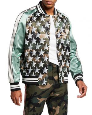 Valentino Mens Star-Print Satin Souvenir Bomber Jacket