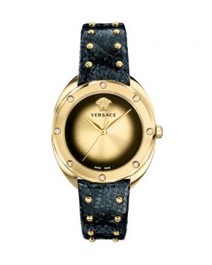 Versace 38mm Shadov Diamond Leather Watch, Black/Champagne