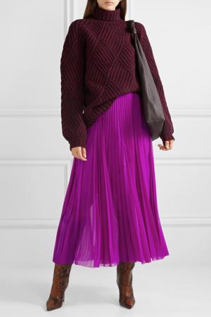 Victoria, Victoria Beckham Pleated satin-trimmed jersey midi skirt