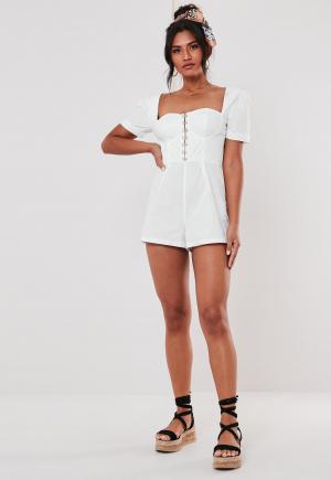 White Poplin Hook And Eye Milkmaid Playsuit Missguided