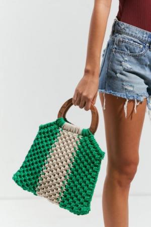 Wood Handle Stripe Macrame Tote Bag Urban Outfitters