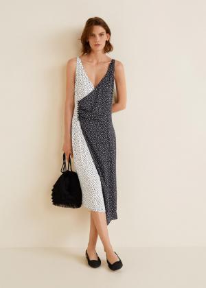 Wrap contrasted bodice dress - Women MANGO USA