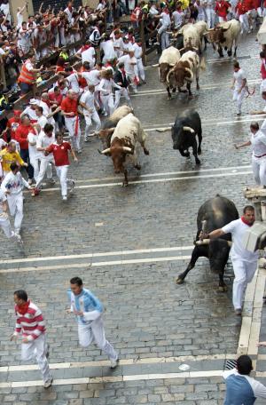 Run with bulls in Pamplona, Spain